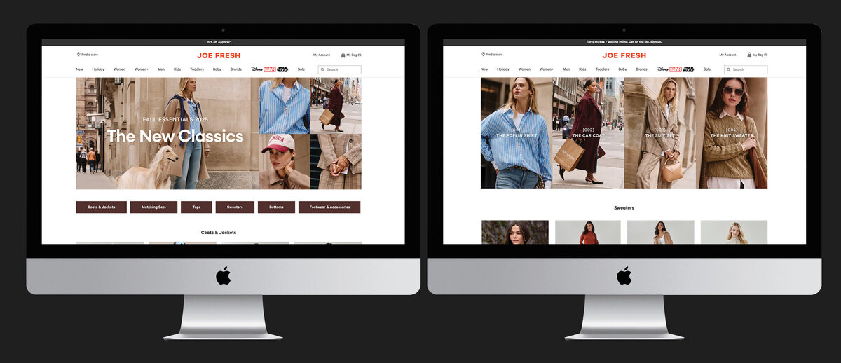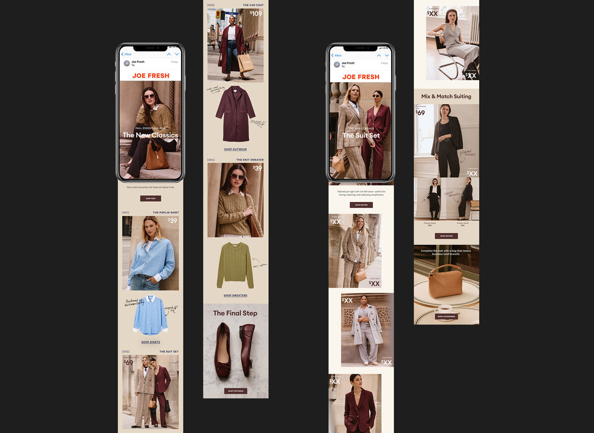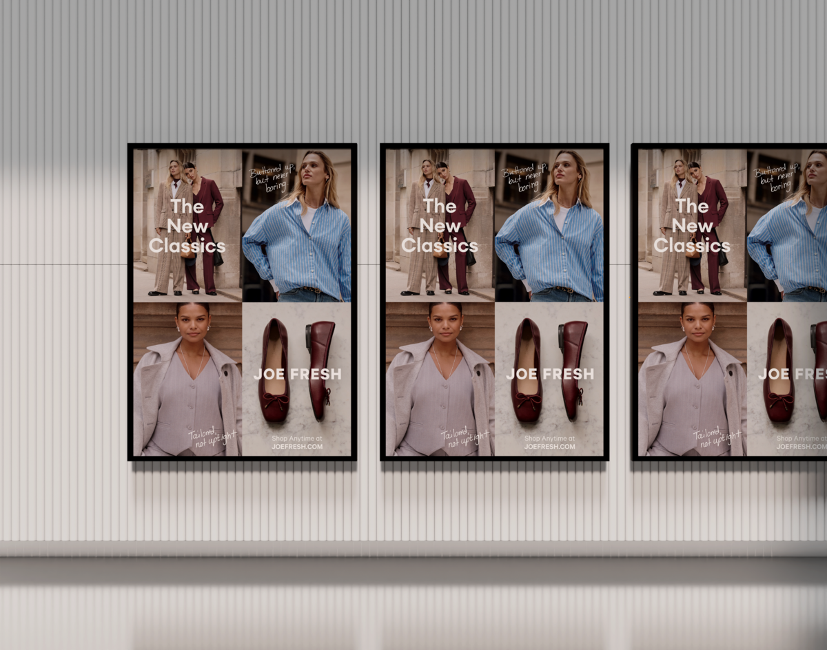 Joe Fresh’s Fall 2025 campaign reintroduces The Perfect Closet through a refined, fashion-focused visual approach. Art direction and design centered on clean compositions, fall tones, chic styling and street-style photography to highlight The New Classics; modern essentials reimagined with elevated and timeless appeal. A cohesive rollout across digital, retail, OOH and paid media brought the brand’s renewed sense of simplicity and style to life.